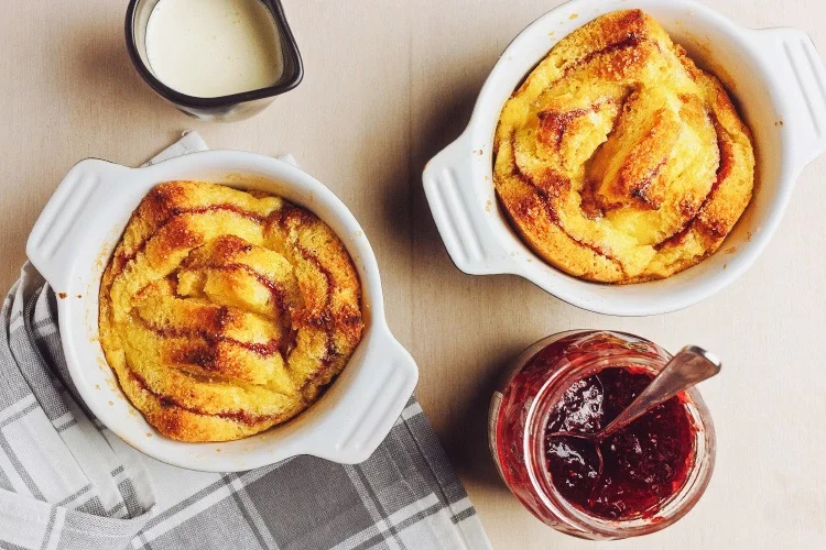 Brioche and jam puddings